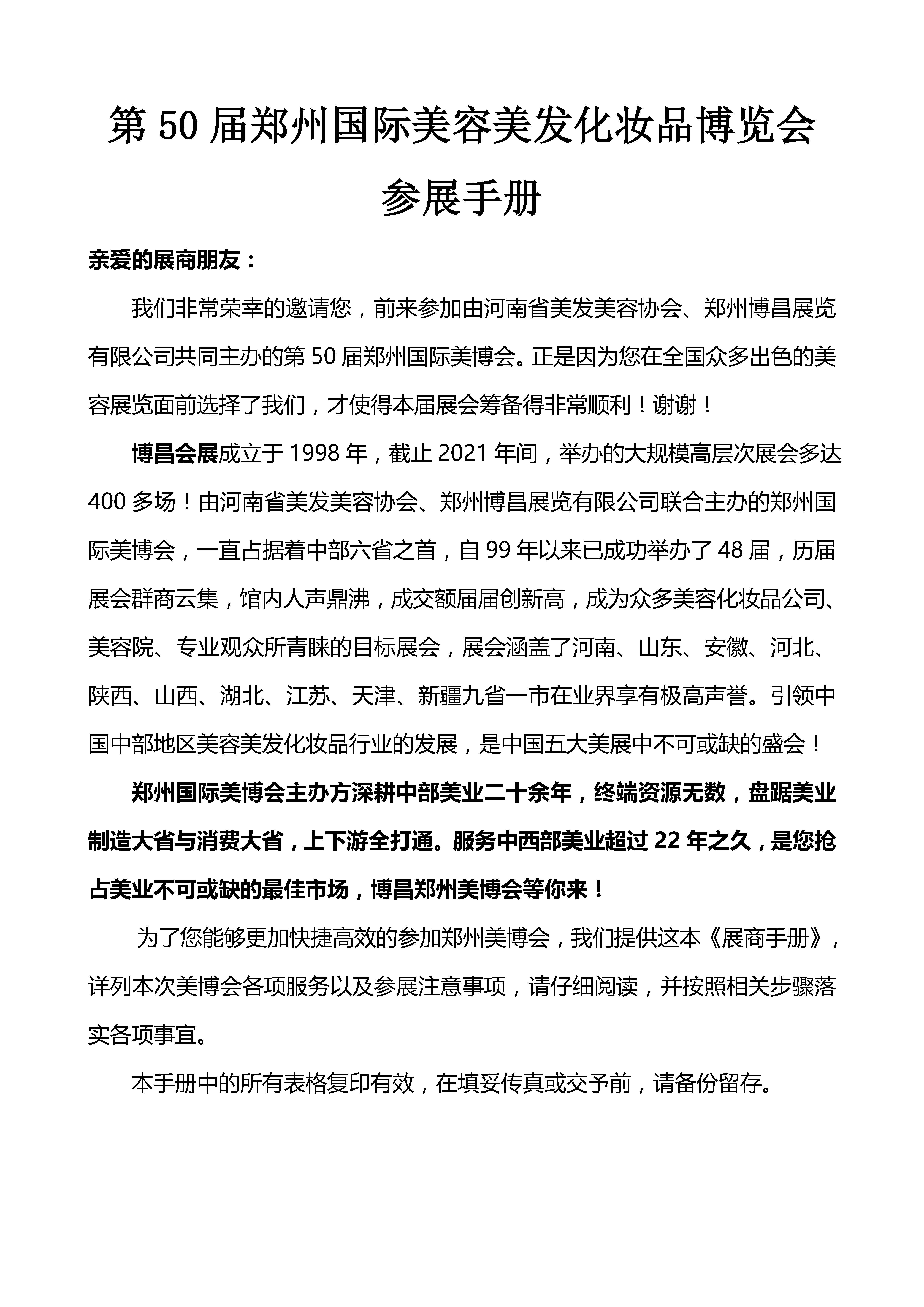 第50屆鄭州國際美容美發(fā)化妝品博覽會參展手冊